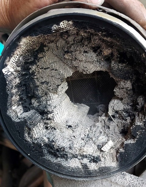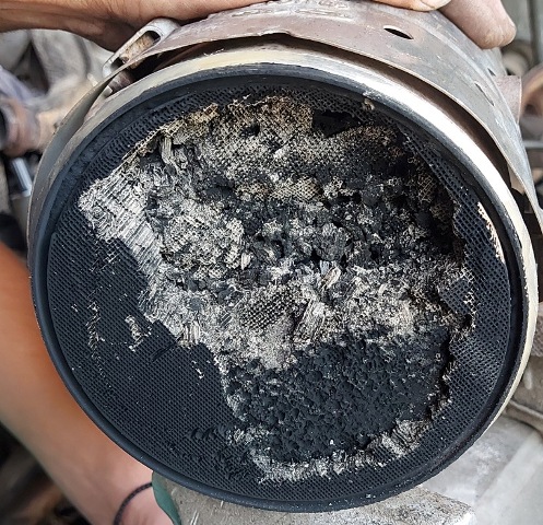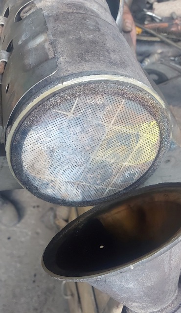 Κατεστραμμένος καταλύτης και φίλτρο σωματιδίων. Καμμένο λόγω πολλαπλών αναγεννήσεων.