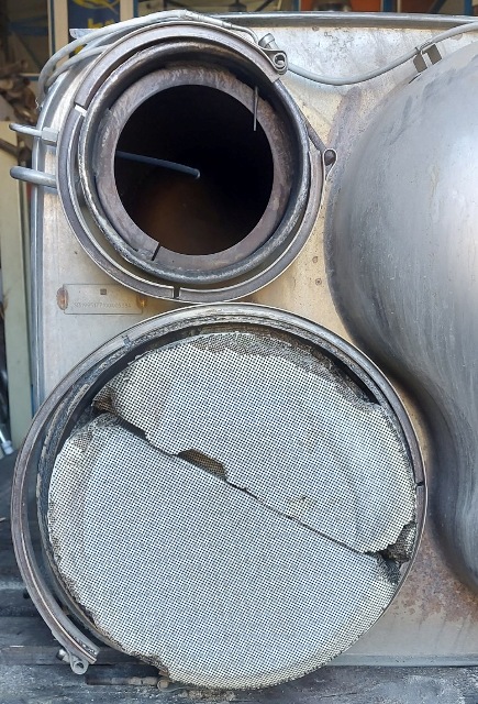 Εξάρτημα διαχείρισης καυσαερίων MAN TGX euro 6. Καταστροφή φίλτρου σωματιδίων πετρελαίου λόγω προσπάθειας καθαρισμού – αντικατάστασής του, από μη εξειδικευμένο τεχνικό.
